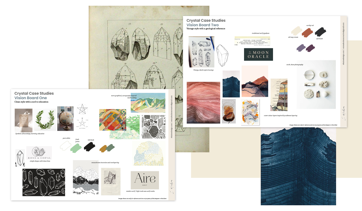Targeted at two specific audiences; retailers and holistic therapists, the brand needed a look that quickly communicated education in the geological sector. Presented with two options exploring each route, Emily chose to merge elements of the two stories.