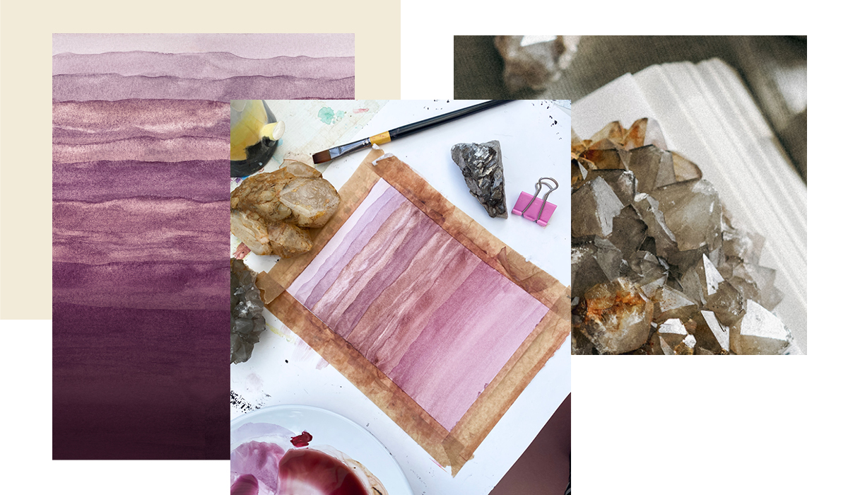 To create a seamless pattern which could be used across multiple assets, I used watercolour painting to create a reflection of the layering on sediments in rock formations. This gives the brand a completely unique and more organic look, playing back into the geological references.