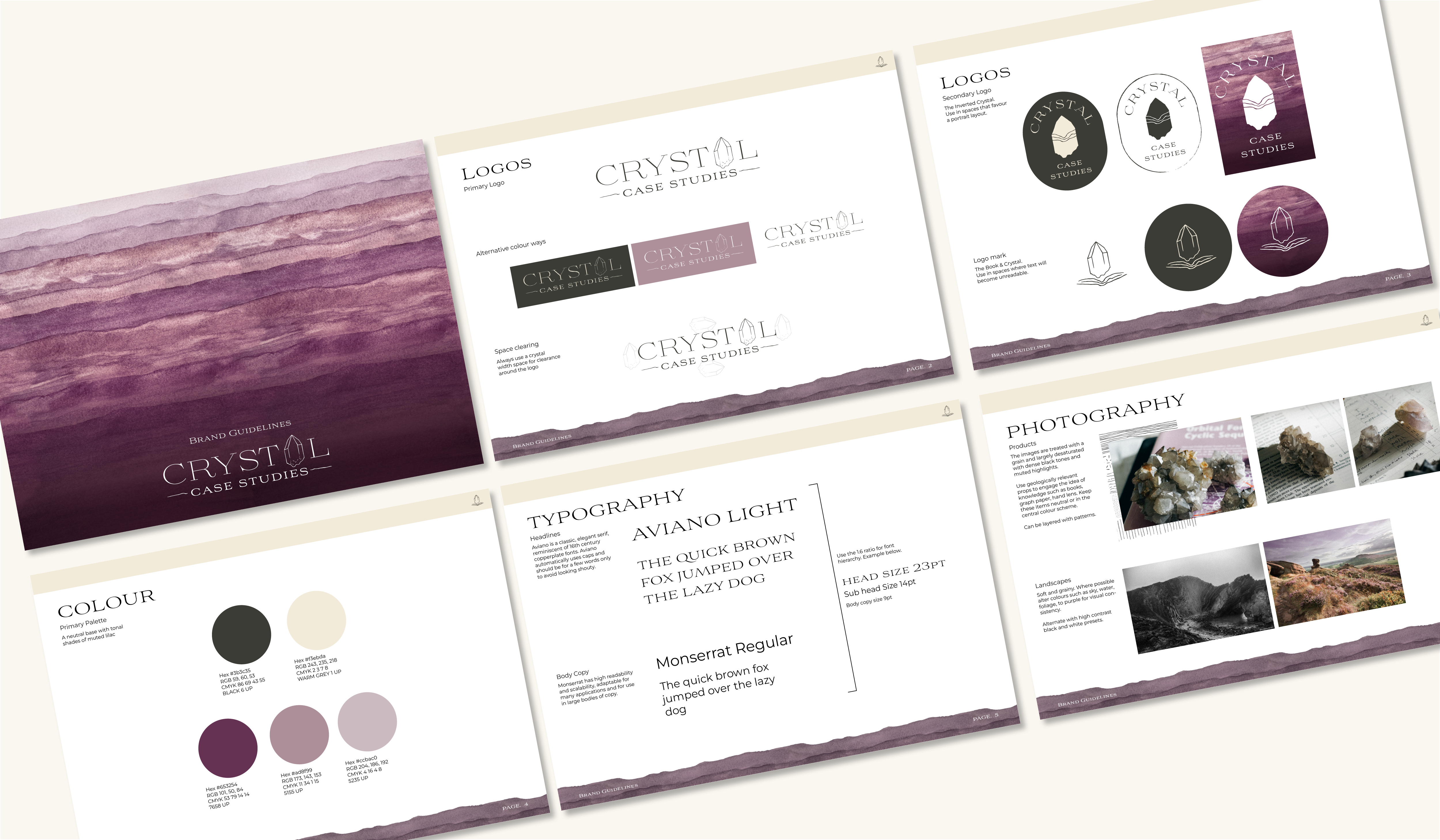 The main logo utilises a typeface that echos the style of typography found in traditional geological mapping journals. Intergrated is a hand drawn crystal replacing the letter A, a symbol which carries through the entire brand system. The secondary logo combines the Crystal and a stylised open book, creating the connection between education and geology.