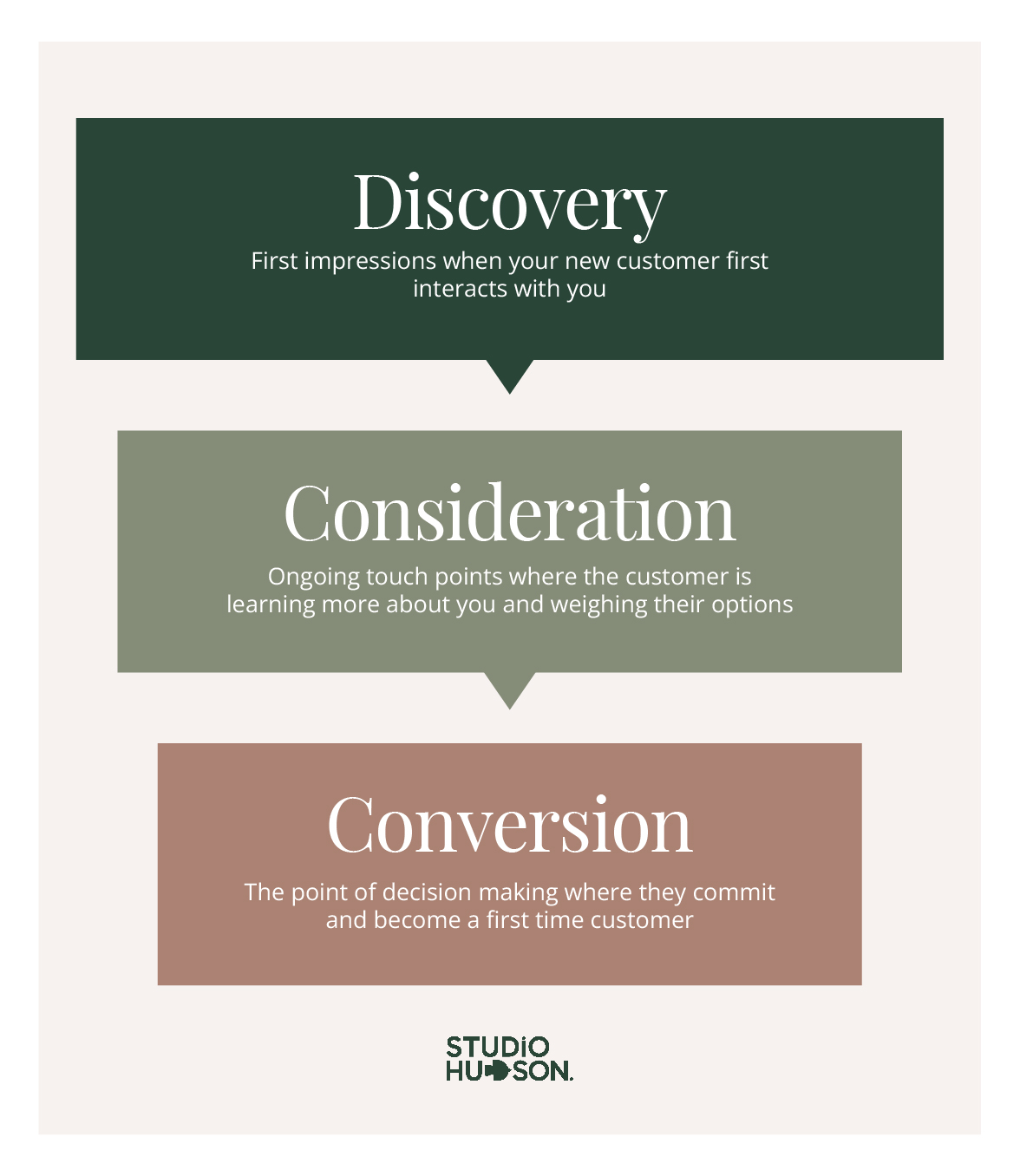 Like any relationship, it’s about making the right impression from the get-go and then remaining true to who you are. By staying consistent throughout your customer’s full marketing journey – discovery, consideration and conversion – you’ll see an increase in sales performance. This is true for your visual branding, verbal language and values.