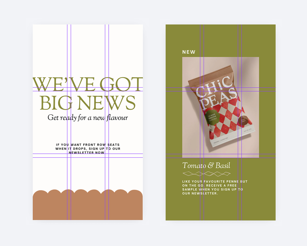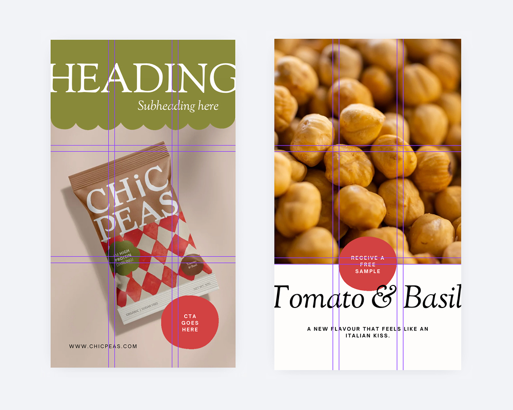 Just because your brand tool kit includes 7 colours, 4 fonts and 16 illustrations, doesn’t mean you need to include them all on every single design. This is called refinement. You look at all the things you have to work with and then make a selection of just a few that curate well together. This avoids over cluttering your space and creating visual chaos. You want to use enough that it still looks like your brand but scaled back to a minimum amount of elements will create a much more professional, modern style.