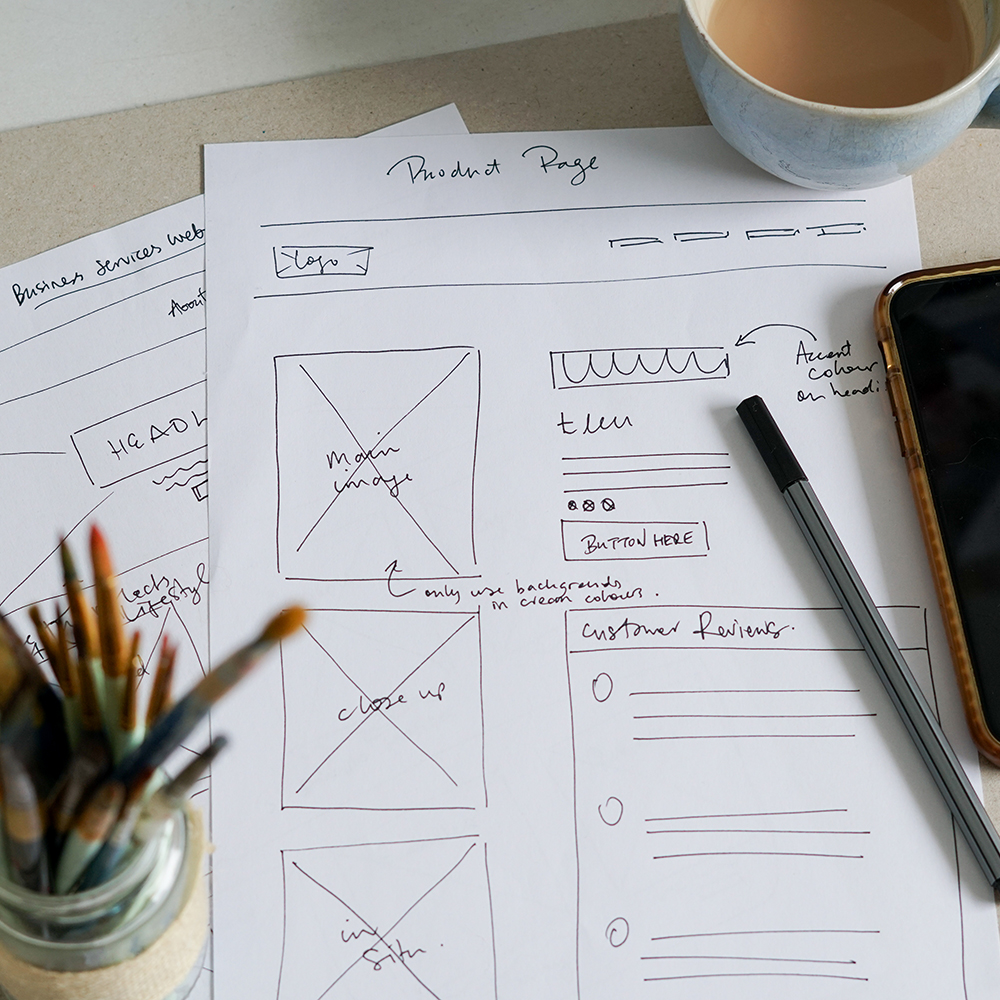 We’ll assess your current website if you have one and establish what is and isn’t working and what your goals are. Using wireframes, I’ll create a structure that funnels customer to the right place, quickly and develop a content strategy that engages them throughout.