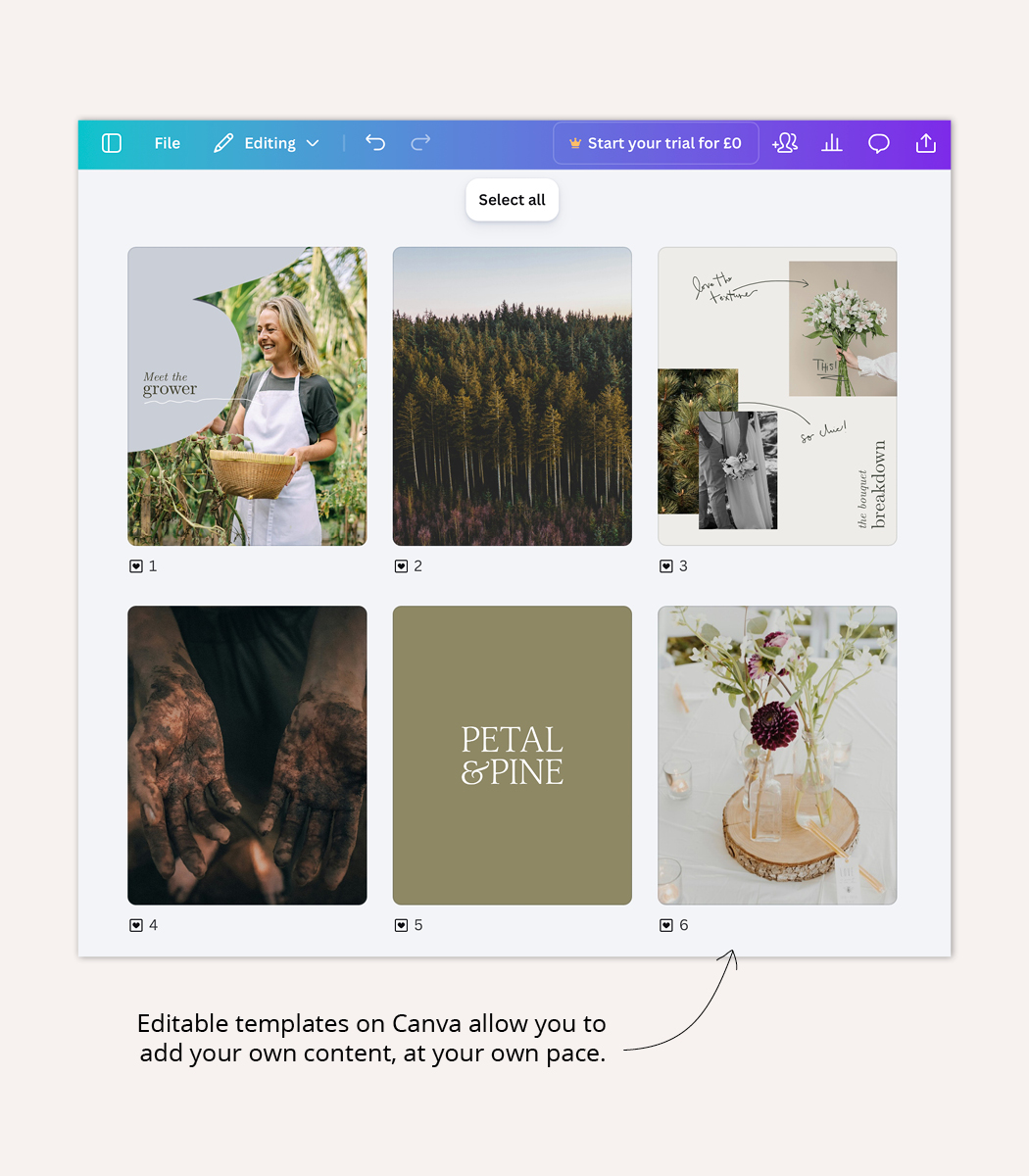 - A series of flexible templates in Canva or Adobe Express for your feed that you can easily edit