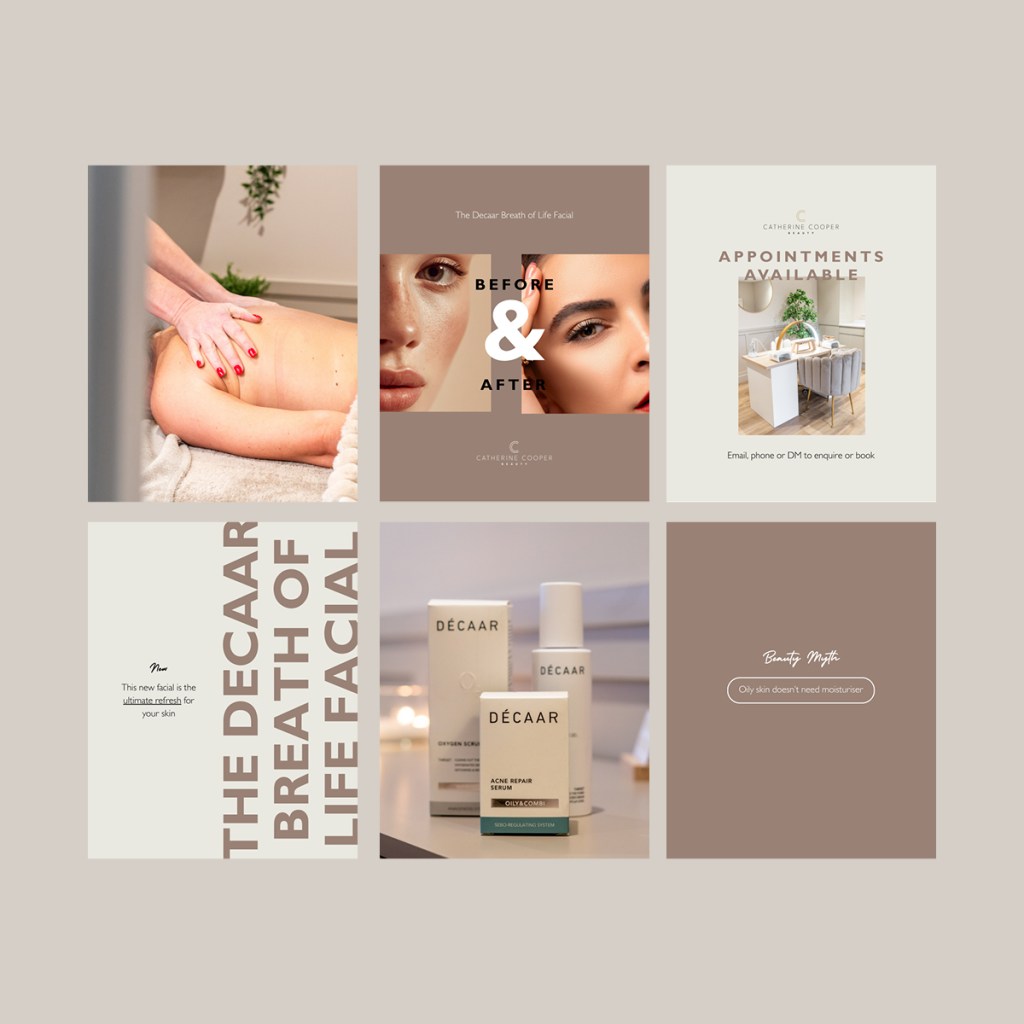Like a mood board for your Instagram presence. This includes colour palette, typography, layout direction, imagery style, graphic elements, and overall tone. The result? A feed that feels cohesive, recognisable, and aligned with your wider brand across every touchpoint.